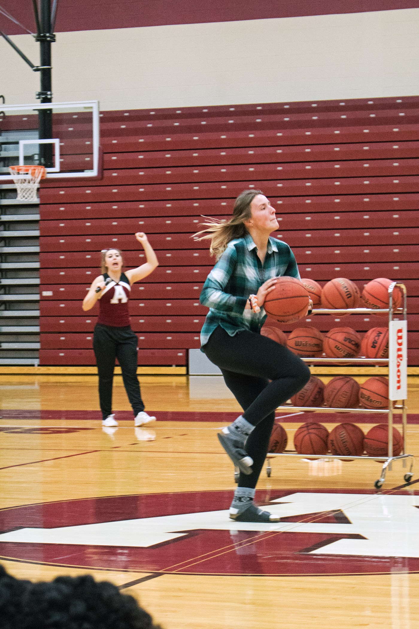 The event was as interactive as it was performance-filled. Competitions like a half court contest, Minute-to-Win-It games with faculty, a team tugof-war and a high flying dunk contest between basketball players were interspersed with presentations from Alma’s Cheer team, Dance team and Kiltie Dancers.