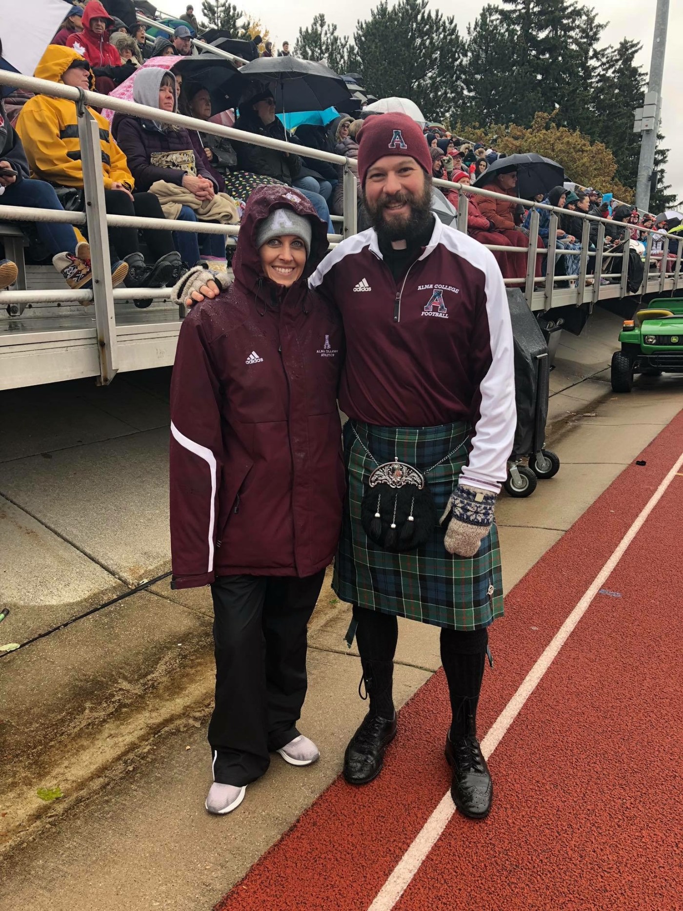 Pomerville can often be seen on the sideline of games in his kilt, collar, and sometimes even a jersey.