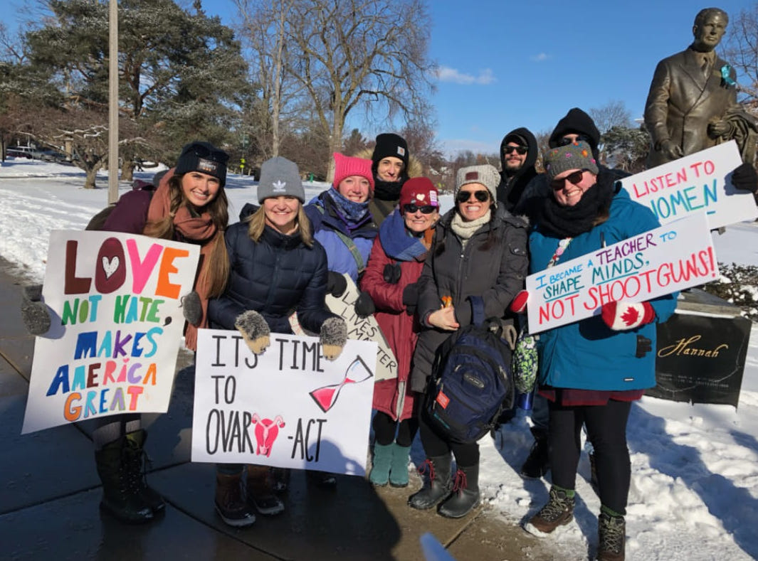 Colleen Loftus (’21) and Eryn Corinth (’21)were leaders in helping set up the trip to Lansing. Eight people traveled together to join the march. While this was Loftus’s first, it was Corinth’s third march of this kind. The others who went had an assortment of experience marching for human rights in this way.