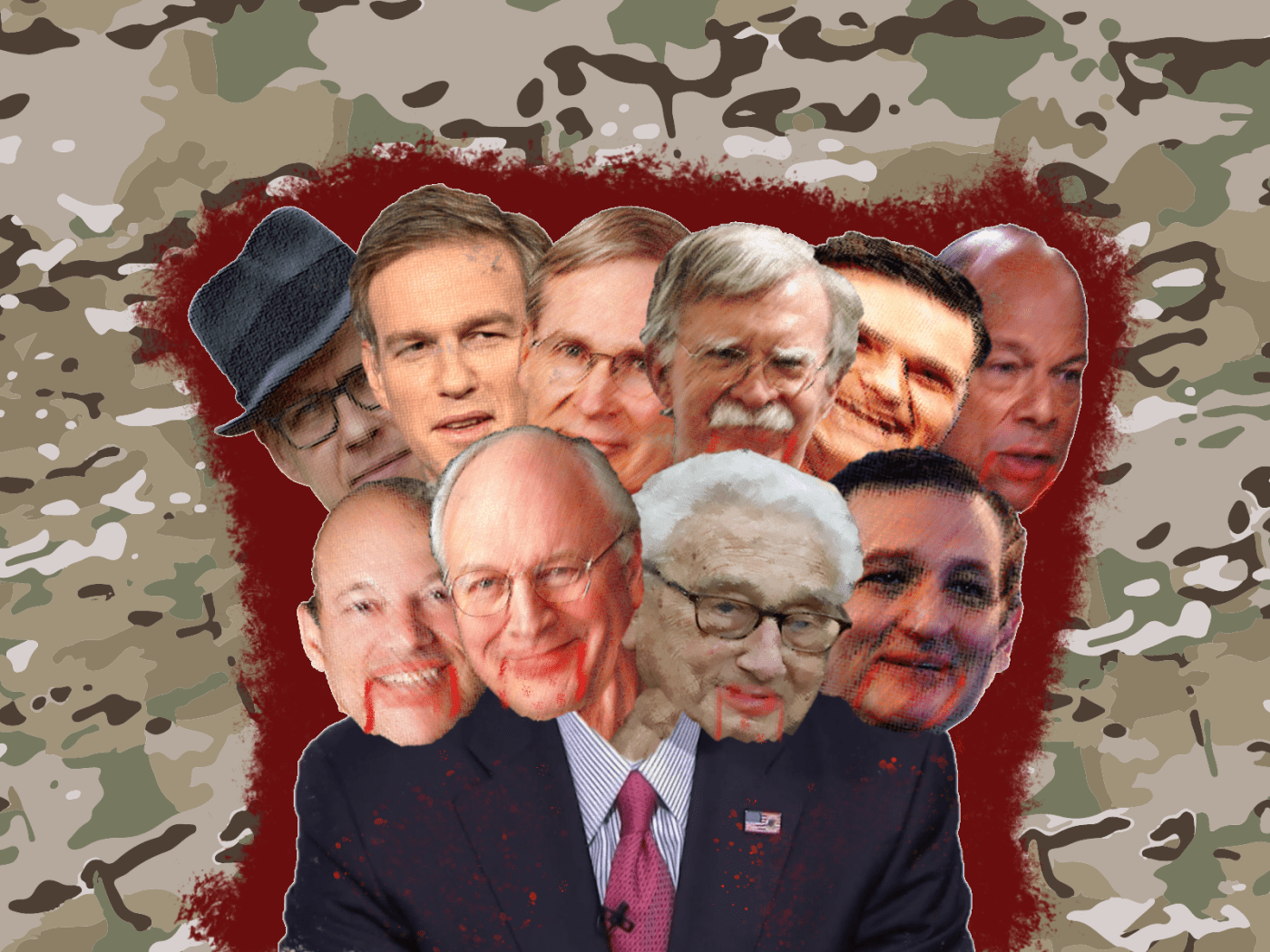 That isn’t the only fact that gets left unspoken when War Nerds start calling for violence. Take this article by Stephen Hadley (pictured in the top row, third from the left) in the Washington Post for example. The article opens with a byline that describes Hadley as a former national security advisor, then Hadley takes 914 words to say that these dangerous aggressions might be good because they could lead to the possibility of diplomacy. Nowhere in the article is there a disclaimer that the author also makes hundreds of thousands of dollars every year serving on the board of directors for Raytheon, a defense contracting firm that stands to make enormous amounts of money if we go to war.