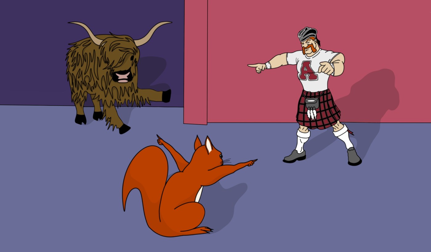 The rumors Sarah mentioned were ones started by students who were under the impression that Scotty would change his outward appearance and take on the likeness of a Highland cow or possibly even a squirrel. Posters ha ve sprung up around campus both in favor of and against the squirrel as a potential new representation of Scotty.