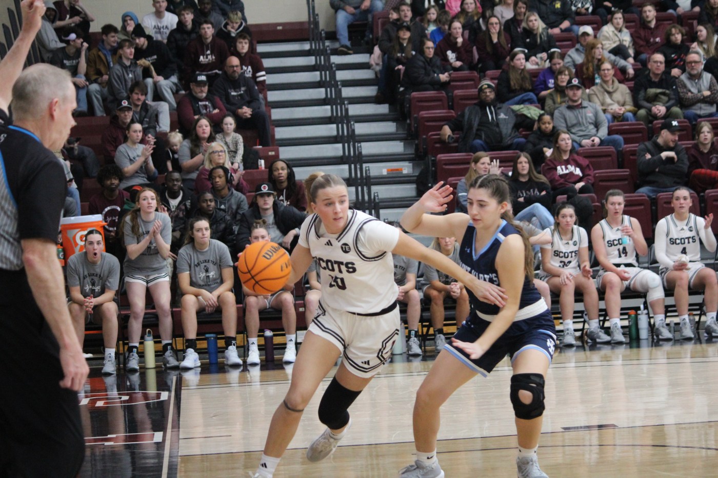 The Scots came up short in the first matchup with Calvin College, suffering defeat by only 4 points, 50-54.